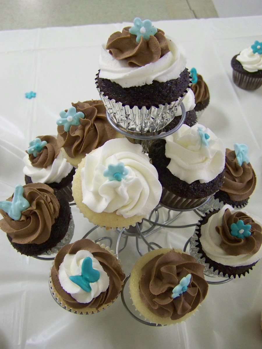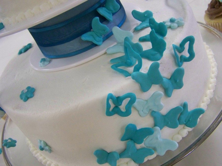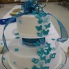 2 tiered cake with 6 dozen matching cuppies - royal icing flowers and butterflies
