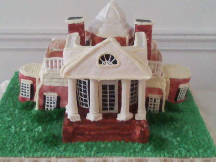 Was requested to make a cake replica of Jeffersons house....monticello...delivered to a house made to be a fairly exact replica...Death by Chocolate covered in chocopan with gumpaste adornments and pillars