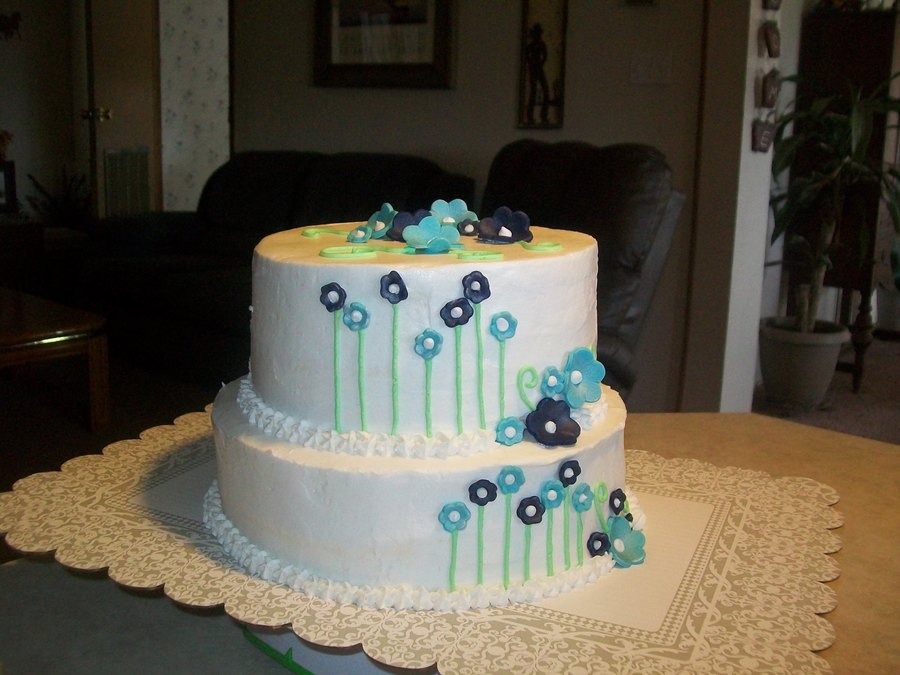White Velvet cake, with almond buttercream filling. The flowers were made to match the colors of the bridesmaids dresses. A lot of inspiration from CC on this cake!! TYFL