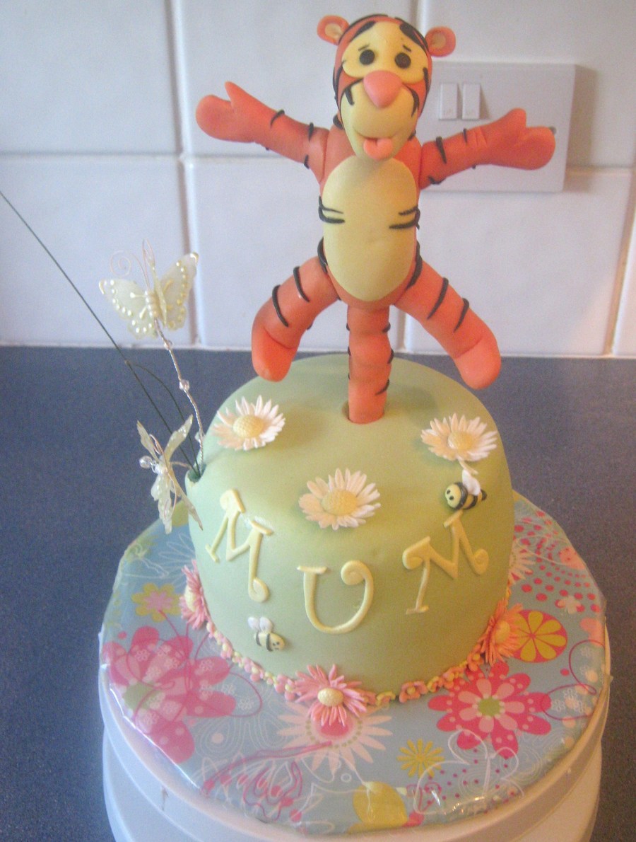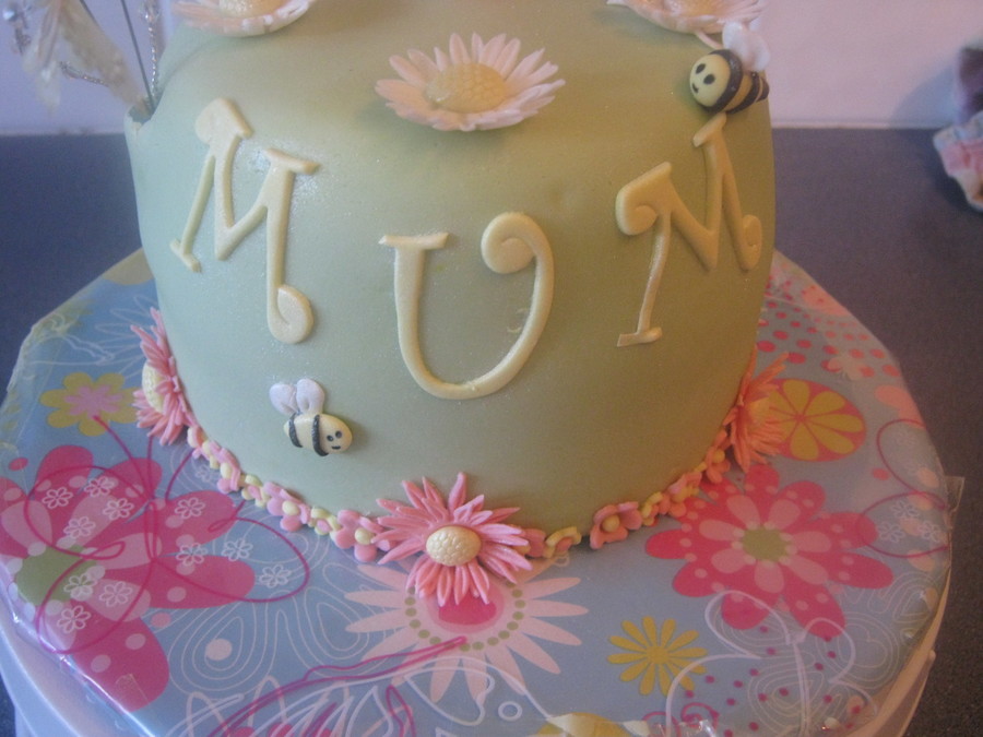 small victoria sponge cake with BC filing, decorated with fondant figures and flowers
