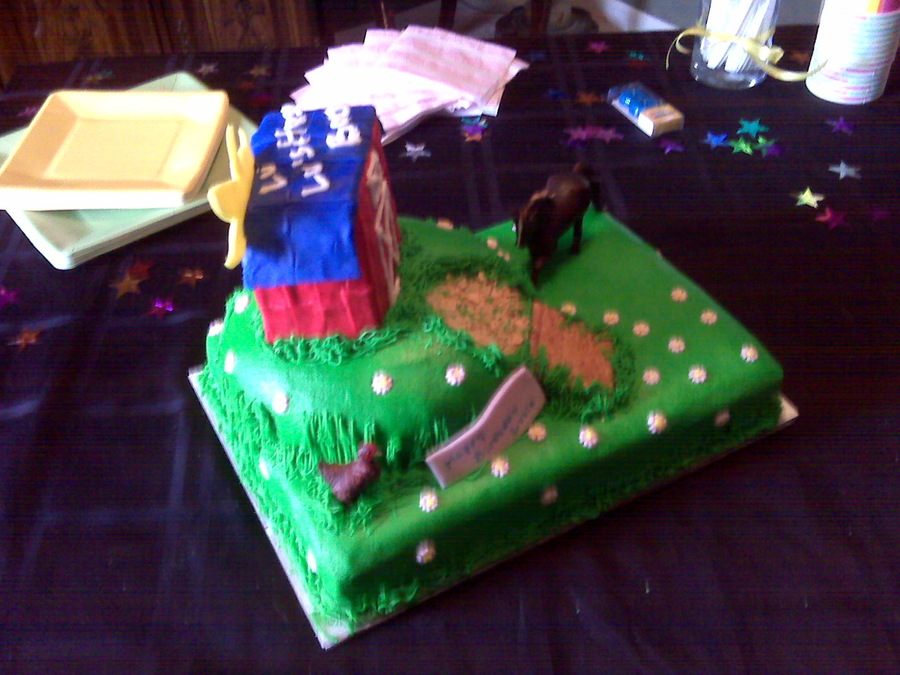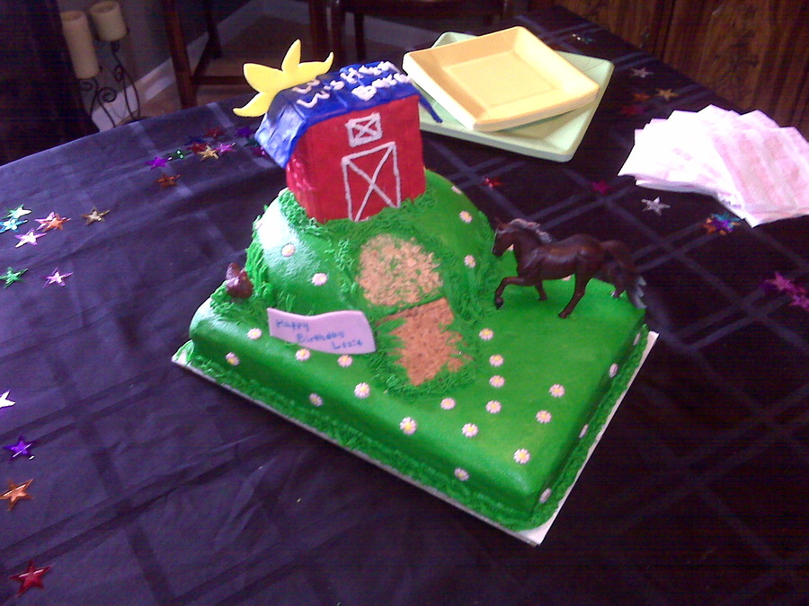 BC with Fondant accents - created for 8 yr old girl - horse and chicken store bought, barn (fondant covered box).