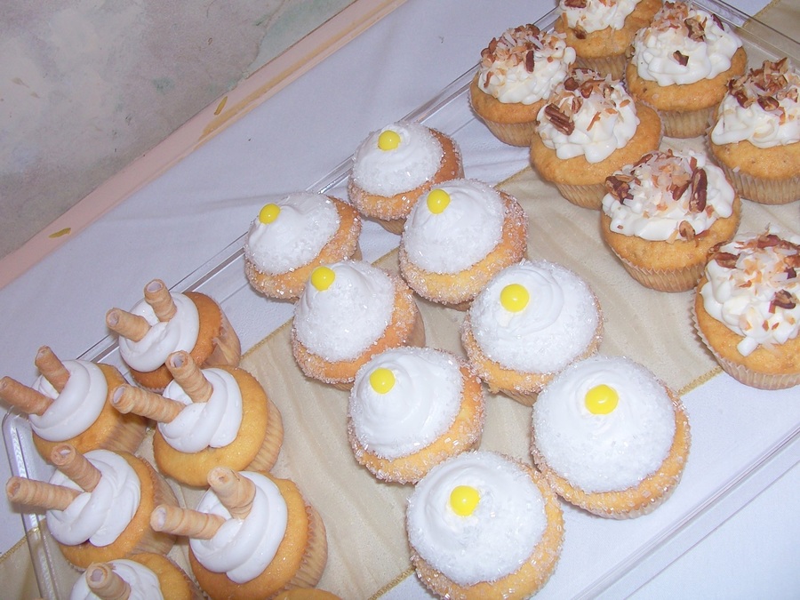 When you have flowers like these, you don't need much decoration on a cake! :) This bride wanted to go super simple with her wedding cake- a 6, 10 and 14 inch Charleston Style Pound cake rounds covered in my vanilla BC with a sage green ribbon border. Orchids were placed between the tiers. My bride also had a cupcake vision for her wedding..all 240 mini cakes lined the dance hall. Flavors included Chocolate Peanut Butter, Chocolate Covered Strawberry, Red Velvet, White Chocolate Raspberry, Lemon Cream Pie and Italian Cream. Thanks for peeking!
