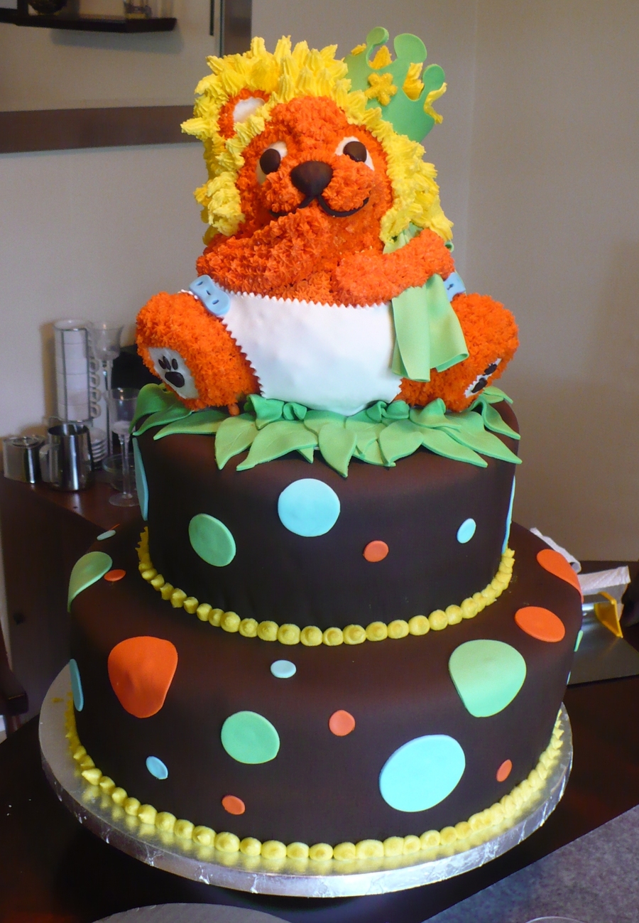 Lion made using teddy bear mold. Fondant & buttercream decorations.