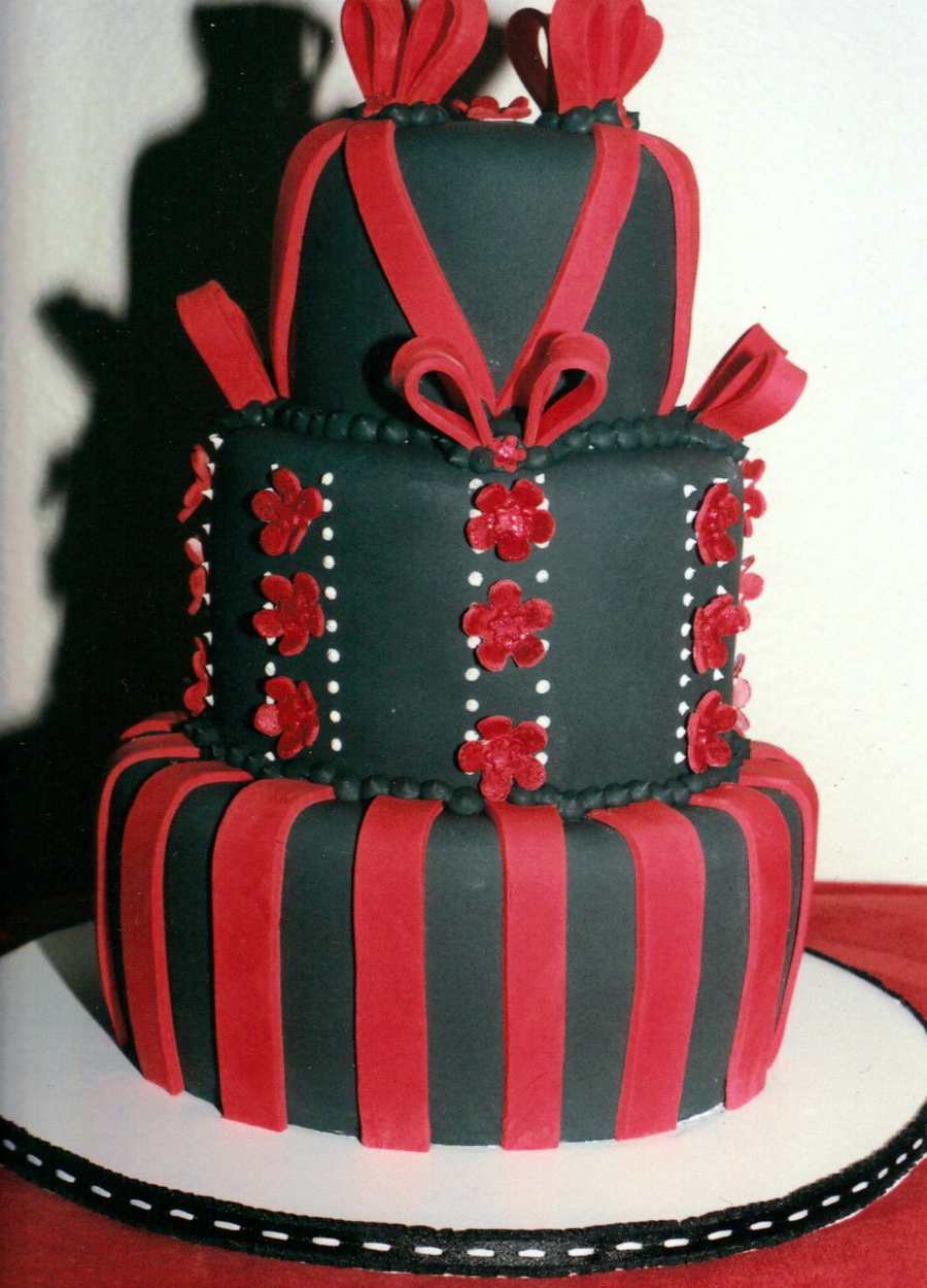 A dear friend had made this cake in shades of pink for my birthday several years back. Another friend saw the photo and decided she wanted it done in red and black for her husband's 40th. TFL!