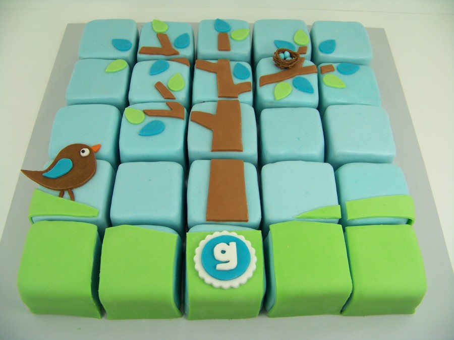 I covered each square individually with MFF. This was the scene on a birth annoucement. I used it as a template on the fondant.