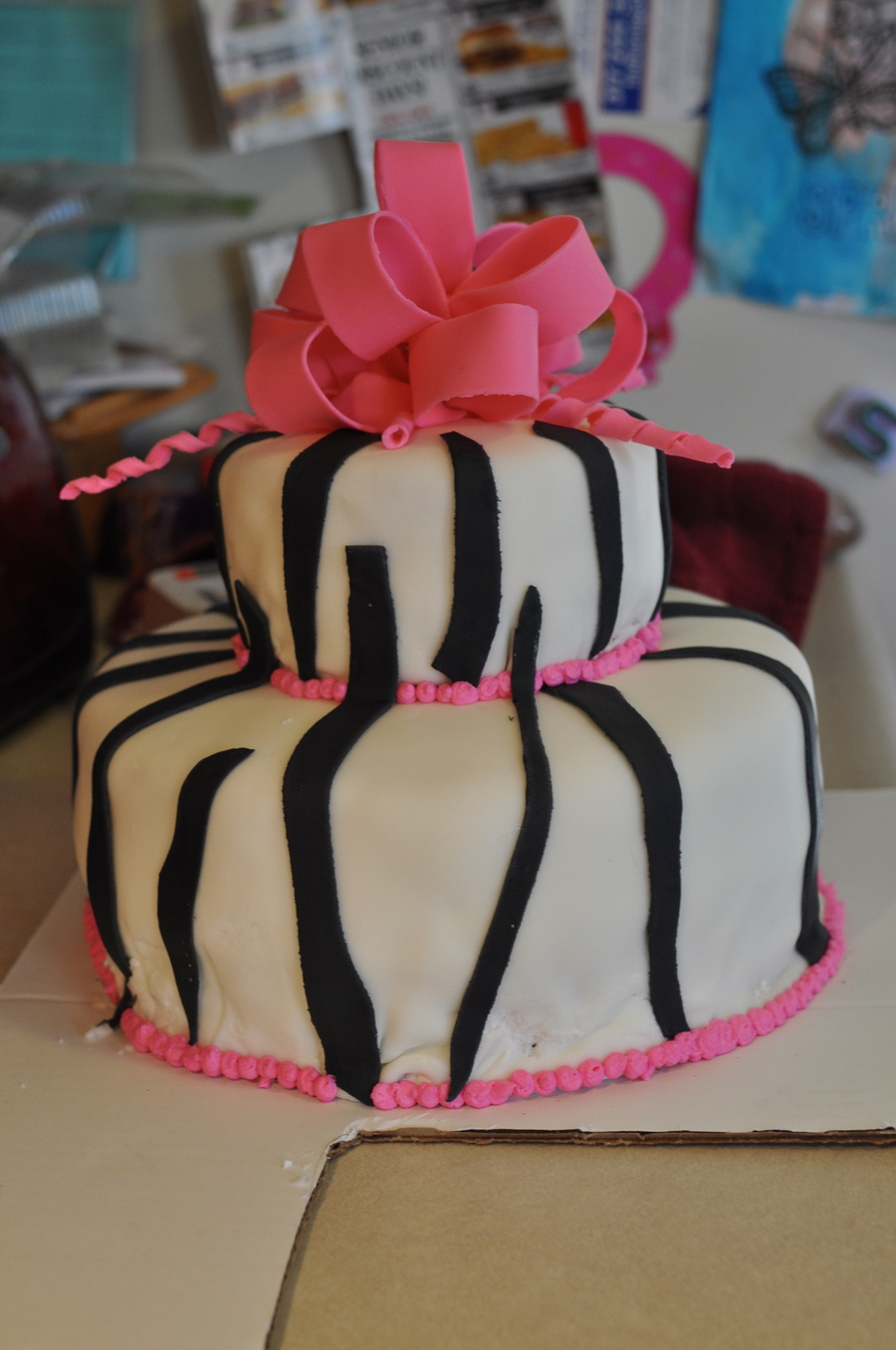 Zebra fondant cake with bow