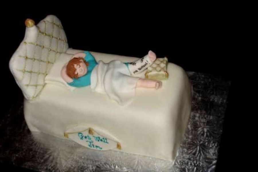 get well cake. chocolate fudge with grand marinier. rolled buttercream, fondant modelling.