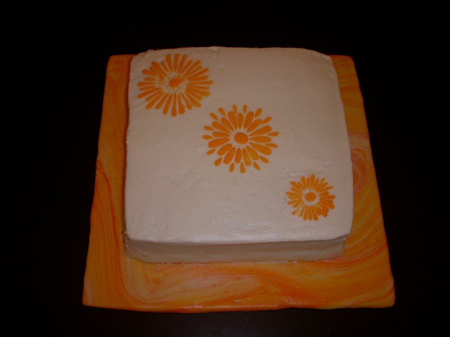 This is all buttercream. I used a stencil to make the "sunbursts" . The board is mmf. tfl.