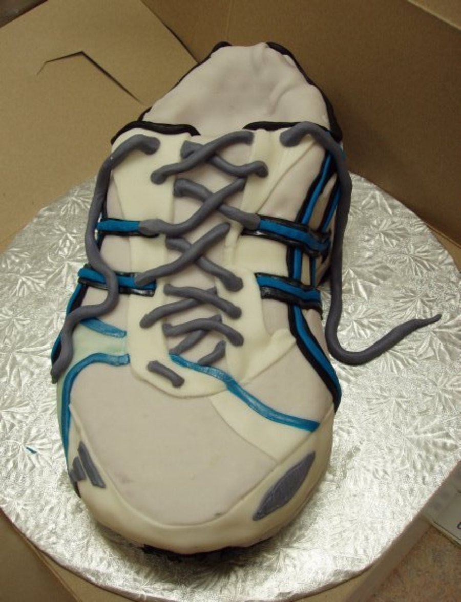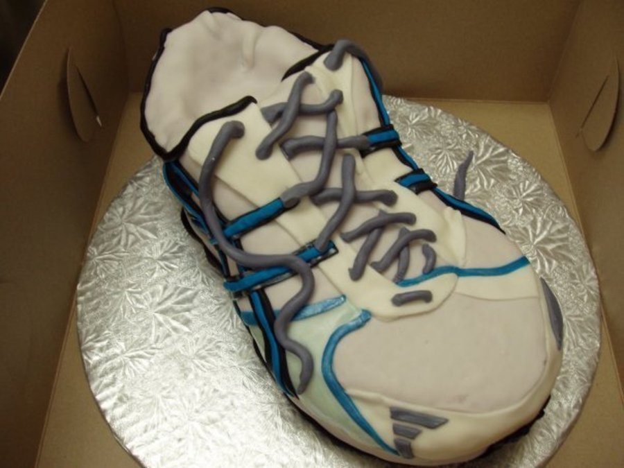 Vanilla cake with vanilla buttercream...all fondant and modelled after my actual asics running shoe.