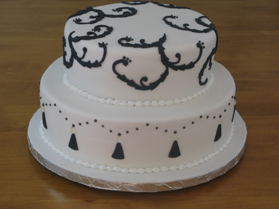 This cake was inspired by a "Pink Cake Box" cake but I used a different cutter, didn't make it topsy turvey and removed the top layer. I made little sugar crystals for the bottom layer which were a little rough and ready but still give a nice effect! The cake was strawberry to complete the color theme of black, white and pink.