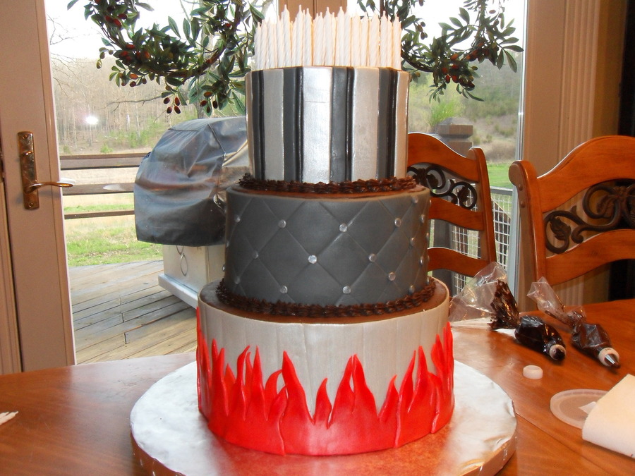 This was a cake my friend asked me to make for her husband's 40th birthday two days before the party. We put so many candles on top, the whole cake almost went up in flames. :)