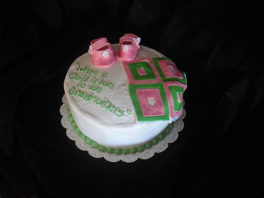 My mom asked me to make a cake for a party given for a new grandmother. I had some more in mind but it turned into a rush job. I'm not satisfied with the turn out but still thought the idea was cute. I used a template from here for the little shoes.