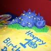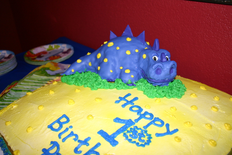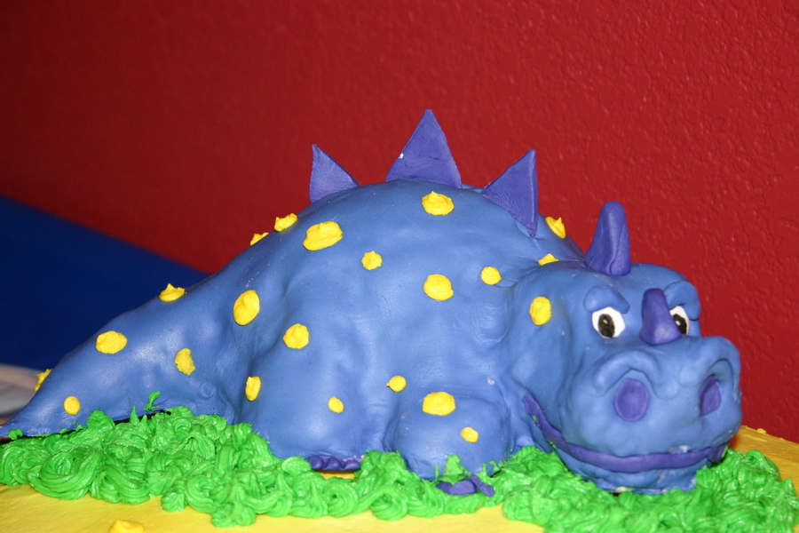 This was the dinosaur sitting on the cake I made for a 1st birthday party. Cake isn't very level, but it matched the theme well. Dinosaur is RKT covered in fondant and buttercream.