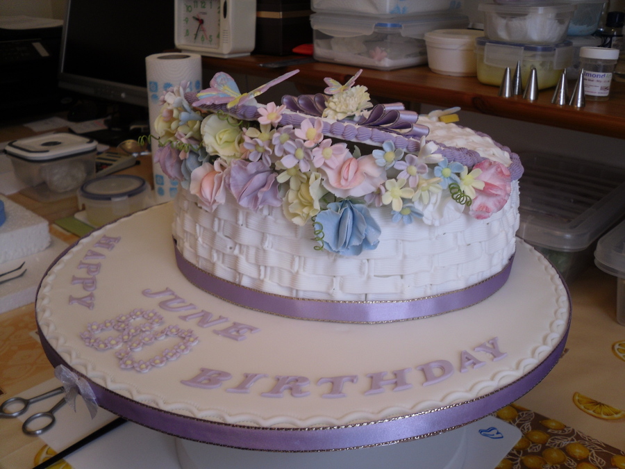 This I made for a 80th Birthday her favourite flowers were sweet peas, hence the mix of colours