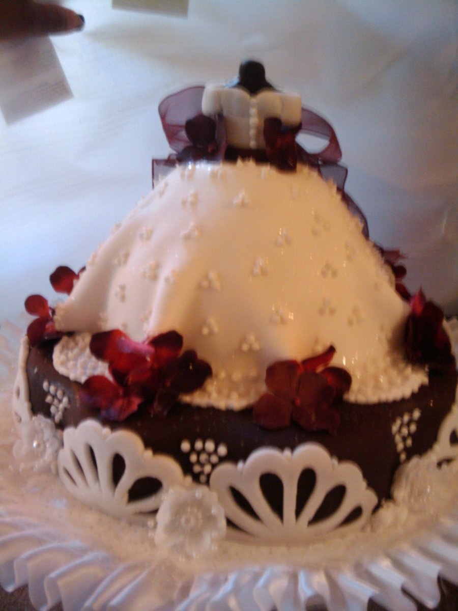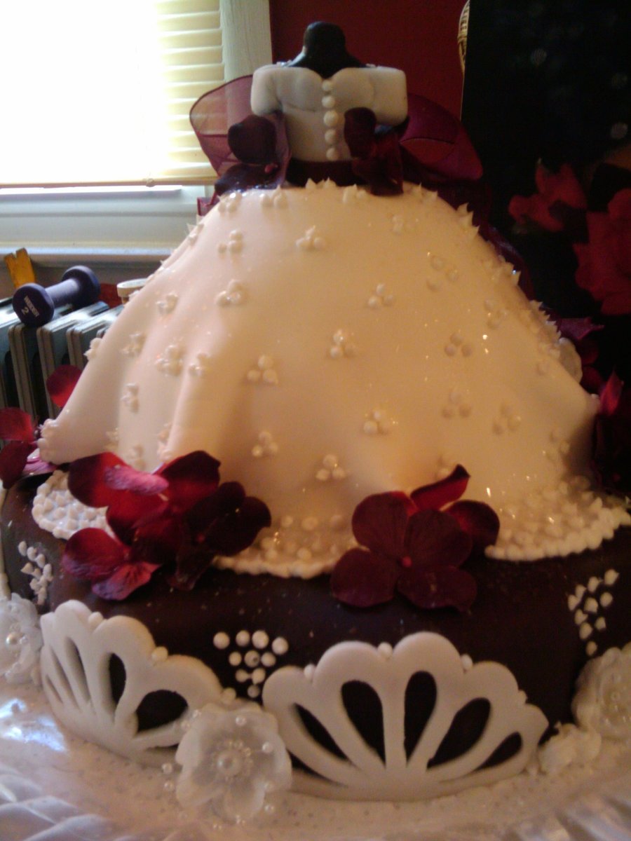burgandy & white dress cake used my new cricut cake on the fondant designs