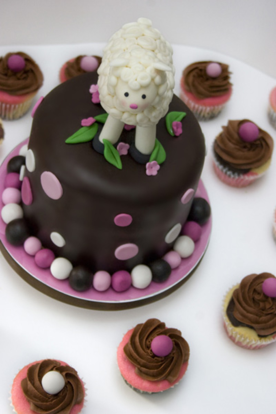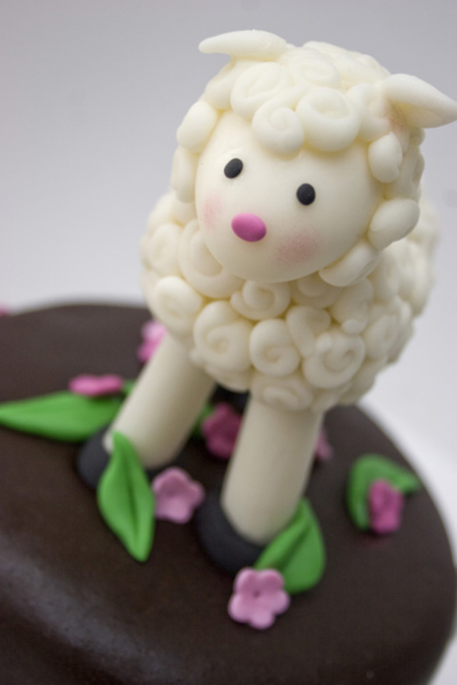 I was in inspired by this posted cake when the client asked for a "Lamb baby shower": http://www.cakecentral.com/cake-photo_750093.html Neapolitan Cake, Fudge Buttercream, and Dark Chocolate Fondant