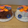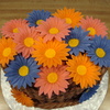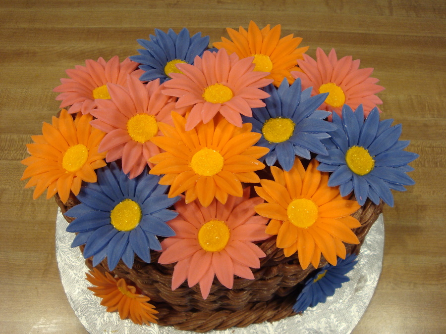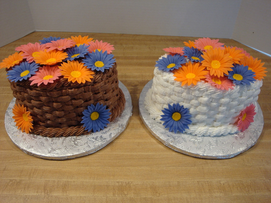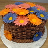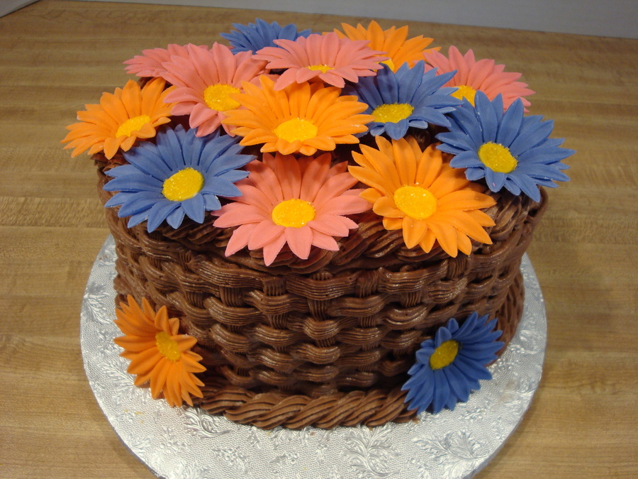 Oval cake with buttercream basket weave and fonant daisies