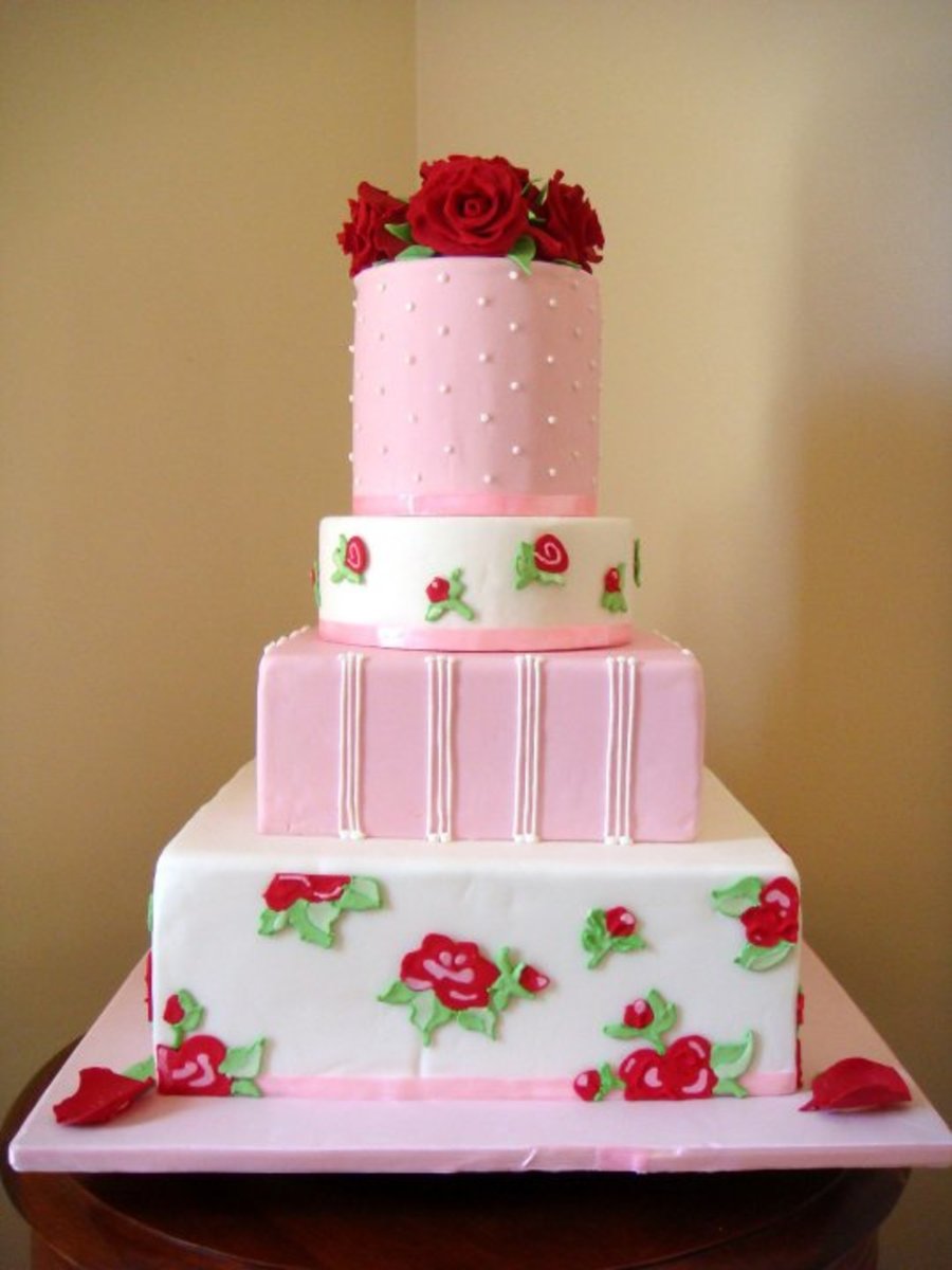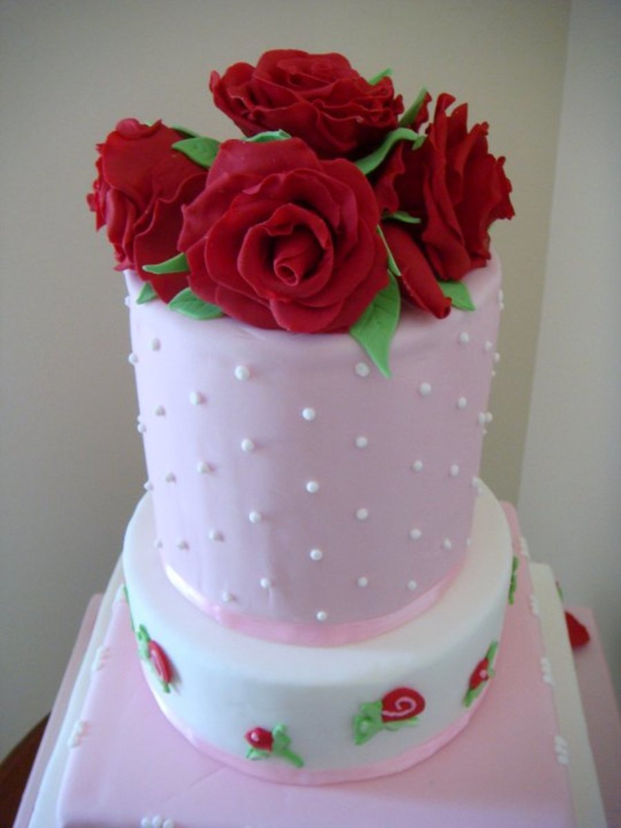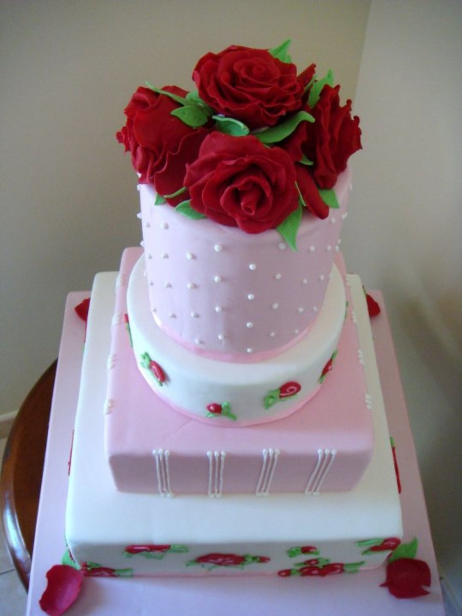 Inspired by Peggy Porschen wedding cake. This was the final cake in my Wilton courses. After 4 long months of cake decorating, I was able to do 4 tiers and roses. I am happy with the results with the exception of covering the cakes, the fondant is not perfect.