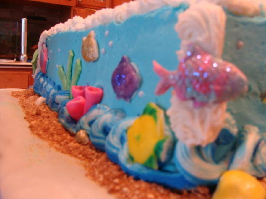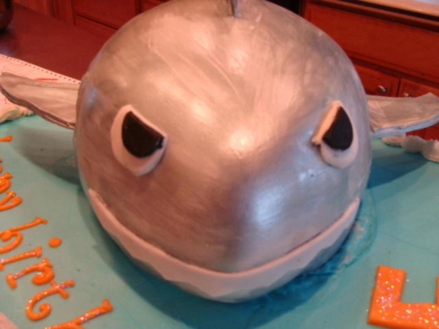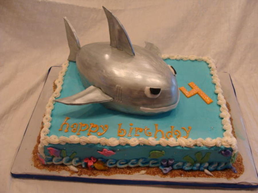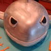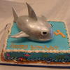 A modified version of Wilton's Shark Bite Cake... Painted with silver fondant glaze. For my son's 4th birthday.