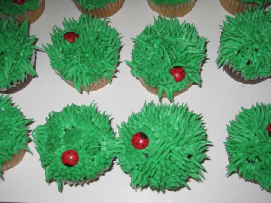 Chocolate and white cupcakes, with buttercream frosting. The little ladybugs are made from red m-n-m's and I used an edible marker to make the head and dots.