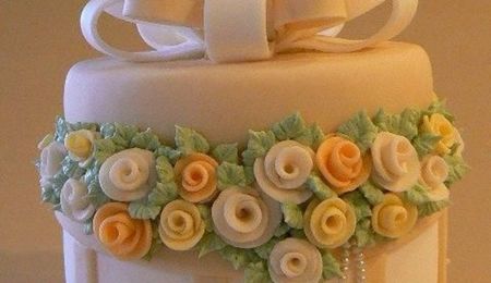 6", 8", 10" and 14" cake layers iced with buttercream. Royal icing coral piped on sides and standing on top. First time at this...... free-hand piping.
