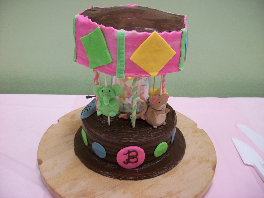 This cake I made for a baby shower where the sex of the baby was a mystery. Wanted to do something cute that would be good for both! The middle was glass with candy inside lit by LCD lights! It was sitting on a lazy susan so it did spin! Thanks to other CC artists for inspiration!