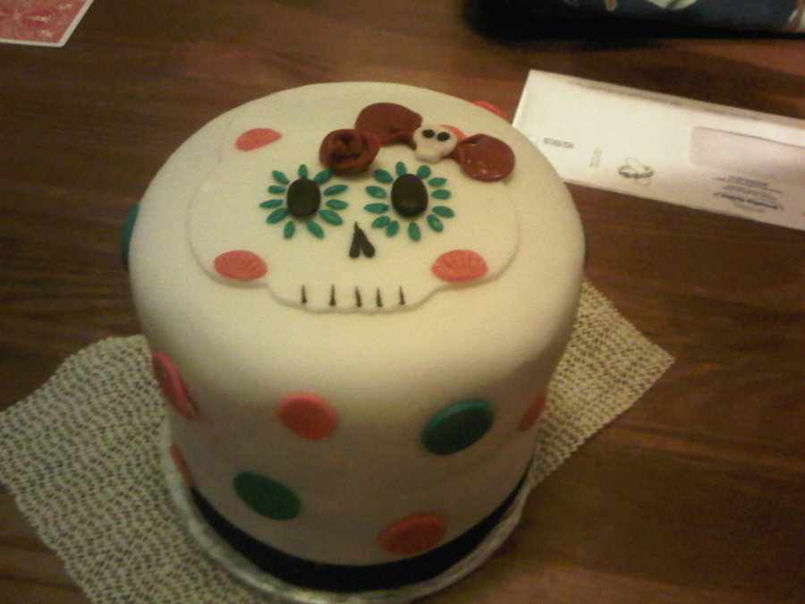 I made this cake for my very good friend . She loves Hello Kitty and Sugar skulls. It is a coffee cake with cream cheese and sourcream filling infused with espresso. This is a 6" cake very tall it is almost 8 inchs tall.
