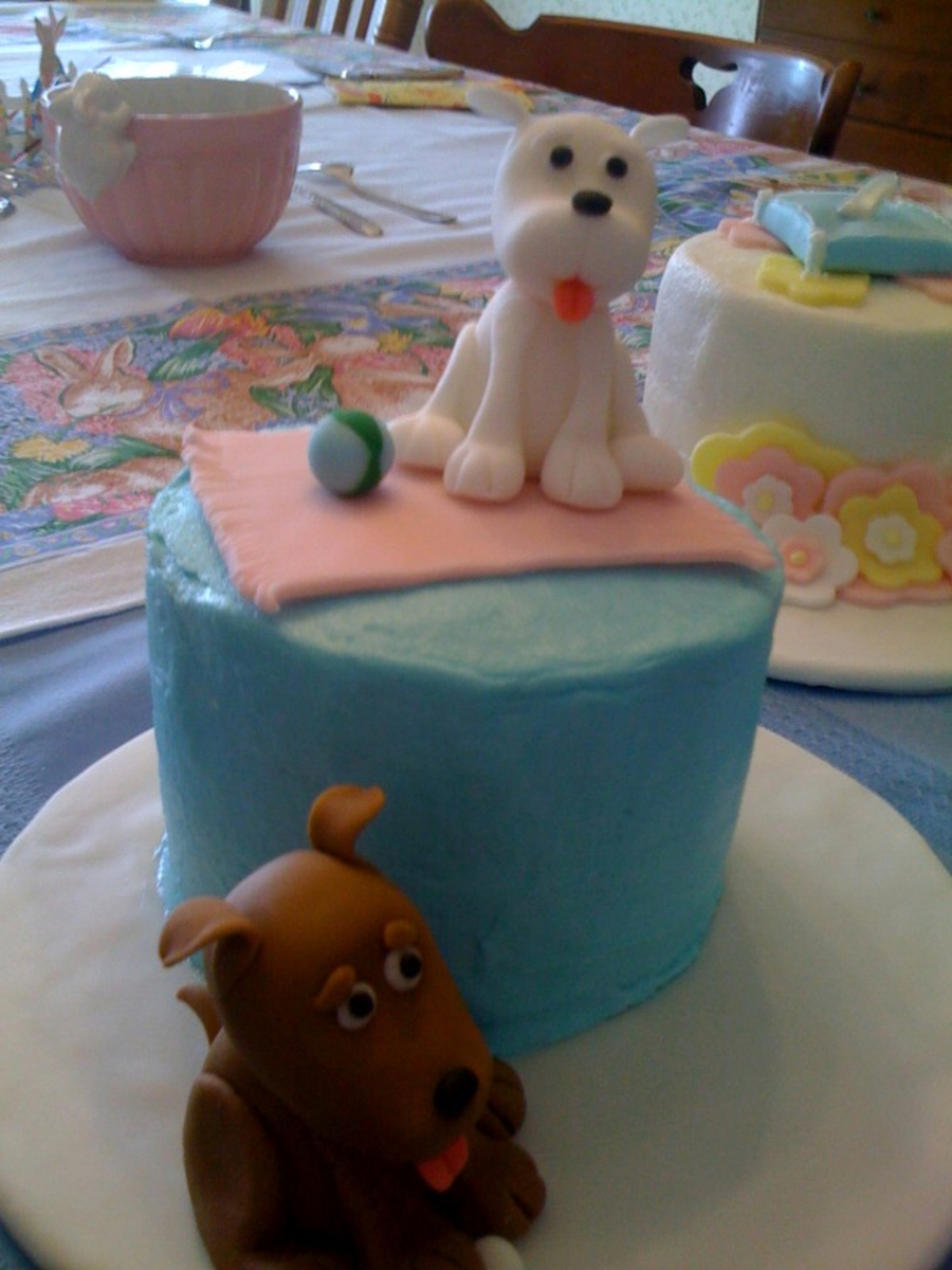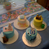 There are 4 birthdays in April for my family and we decided to celebrate them all together. I made each one of them a mini cake. Each one is a two layer 4in. cake specific to each one's interest. BC icing with fondant accents. These were super fun to make.