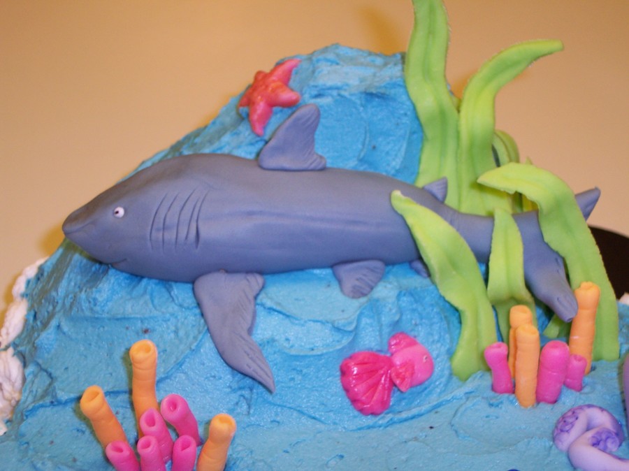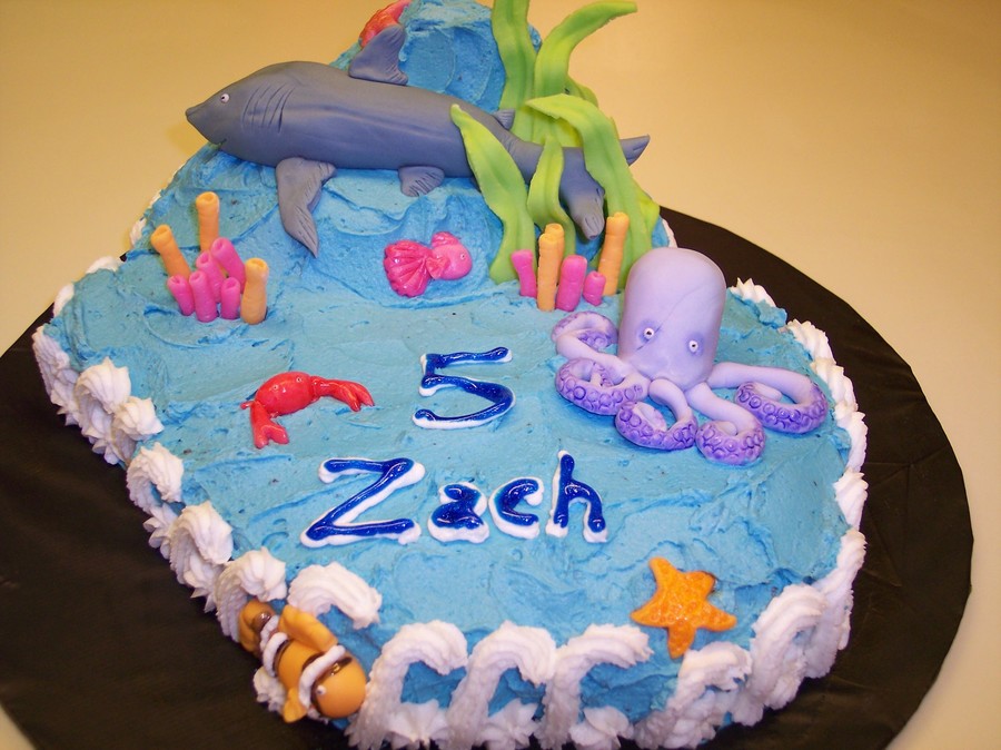 This is an ocean cake for my son's 5th birthday. Fondant figures. Everything else buttercream.