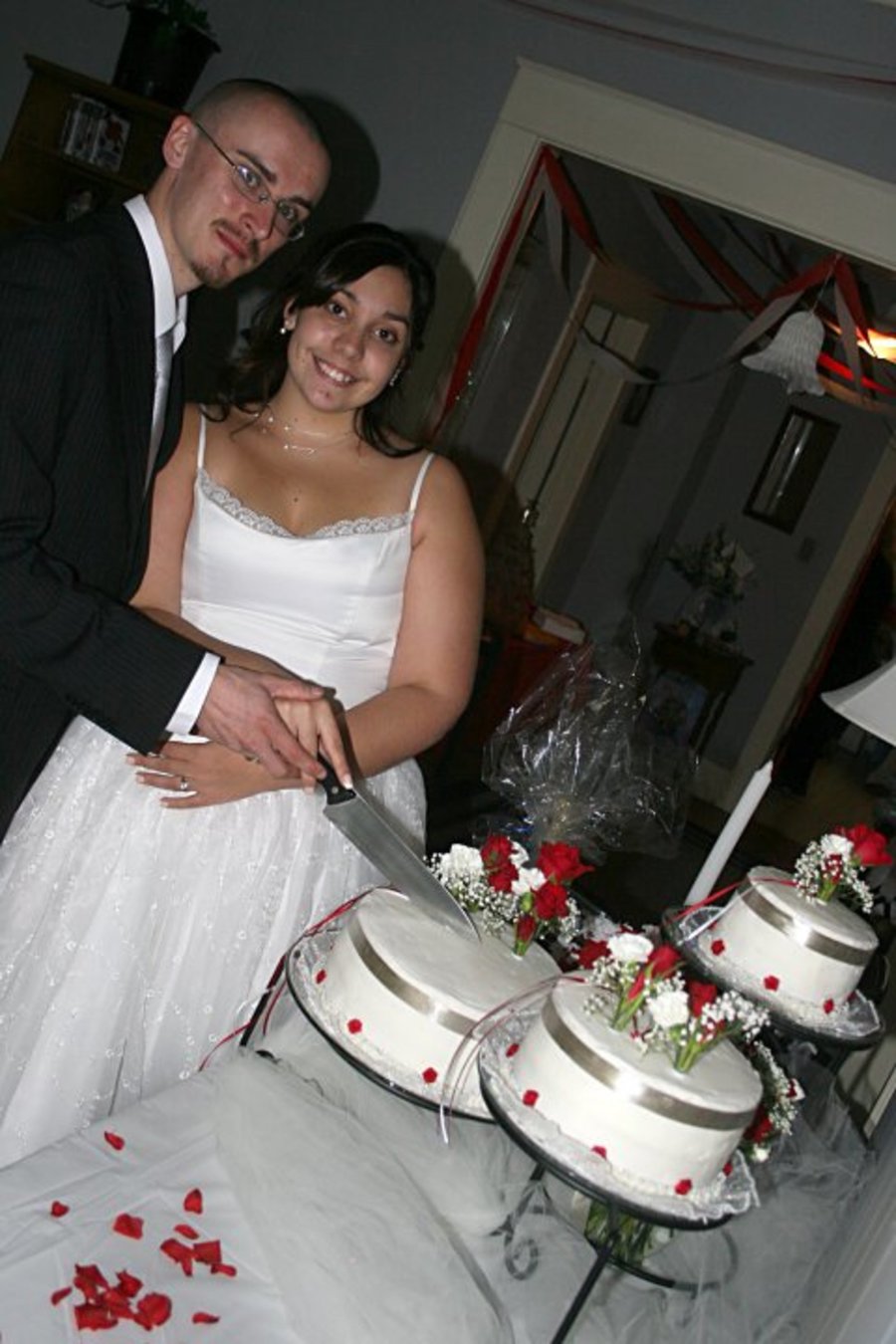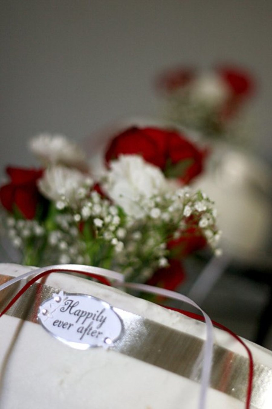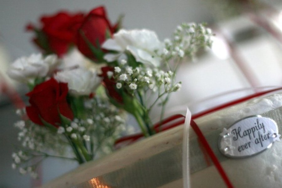 I made this for my niece's wedding...white cake with strawberry and cream filling...fresh flowers with ribbons