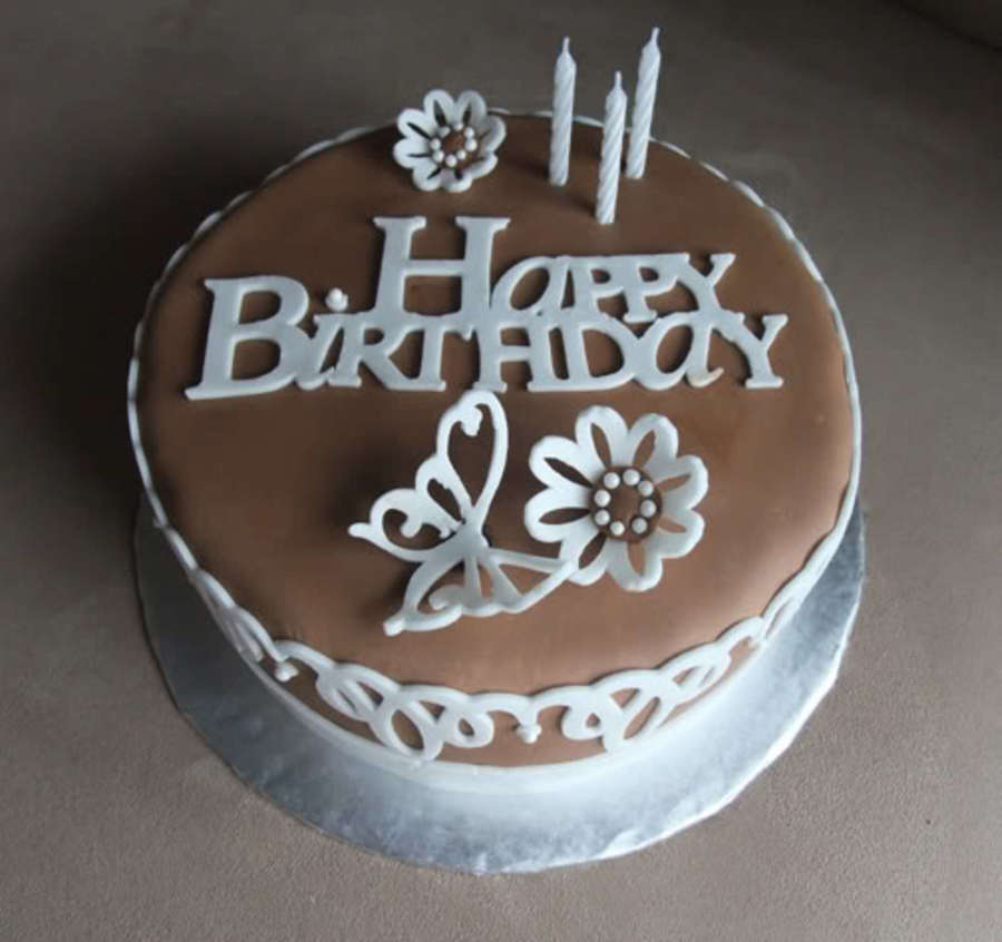 This is the second fondant cake I've made. It's an 8" cake. Two layers of chocolate with a chocolate buttercream filling (mixed with crunched up twix candy bars) and then covered in a layer of ganache and chocolate MMF. I used the cricut cake to cut out the various shapes you see.