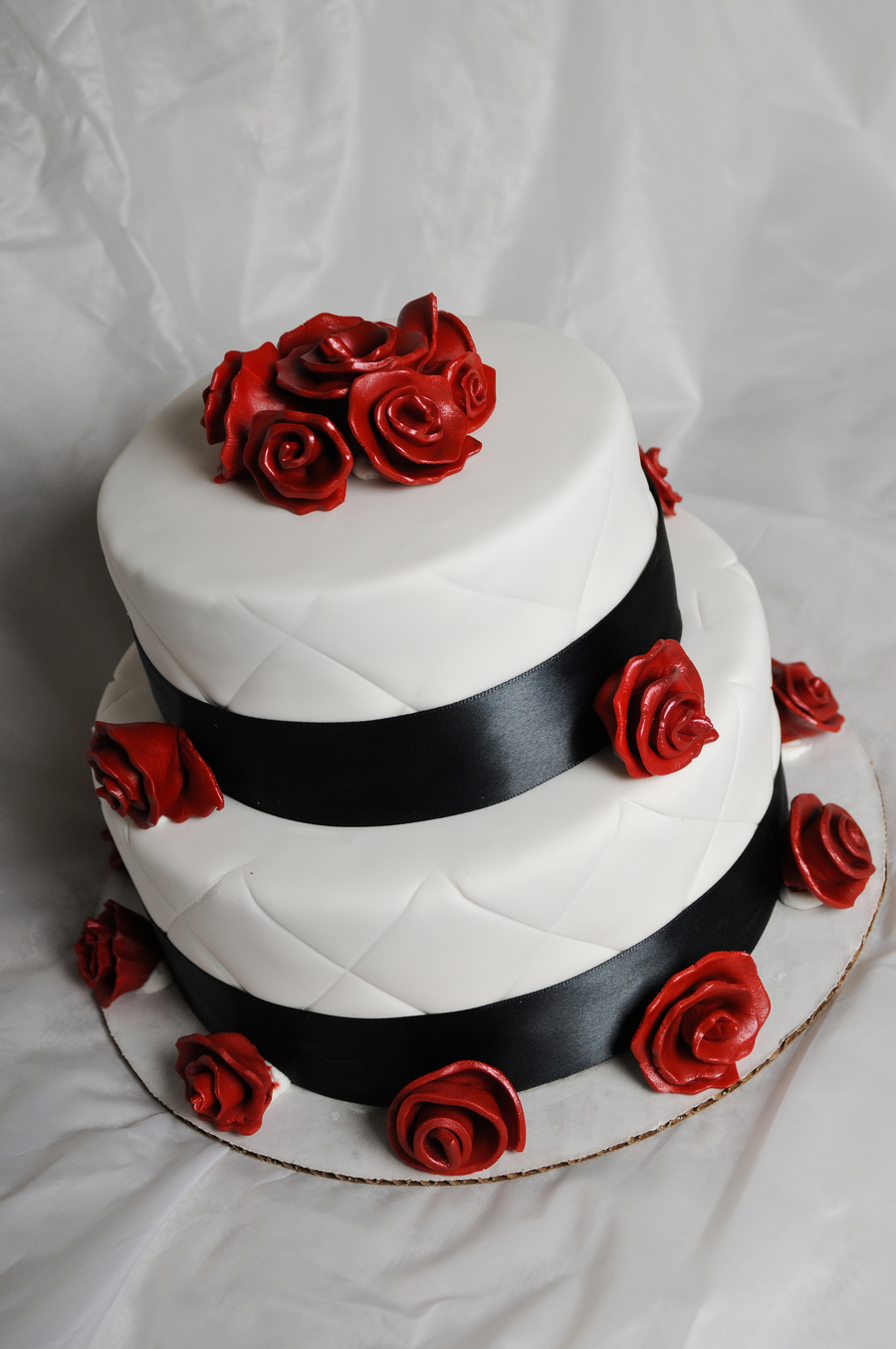 Two tiers, 6" & 8". Cake was vanilla & filling was "pina colada" (Coconut cream & pineapples...nom-nom-nom). "Roses" were made of red fondant/tylose, then brushed with shimmer dust. Quilt effect needs a little work, but this was a fun cake to make & the birthday girl loved-loved it...that's all that matters :)