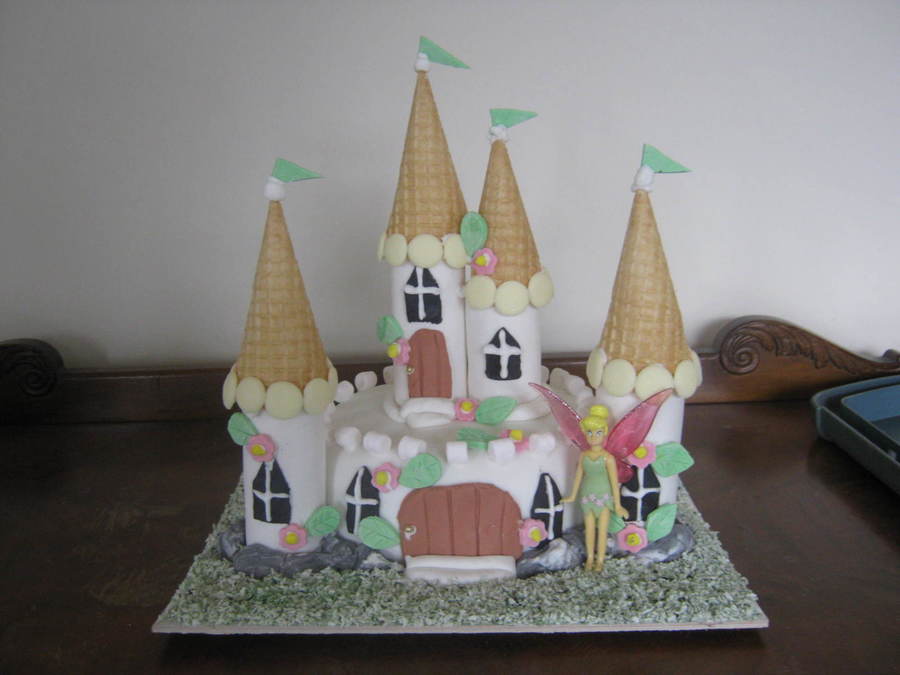First ever castle cake- not as hard as I thought. Cake is chocolate with sugarpaste icing. Turrets are gelain icing tubes (also a first). Grass is green coloured coconut.