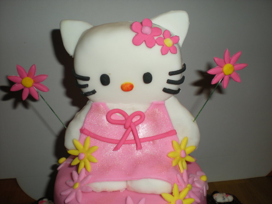 Vanilla Cake with Strawberry Vanilla BC. Hello Kitty made from RKT and covered in Fondant. I made this cake to match my daughter's party plates.