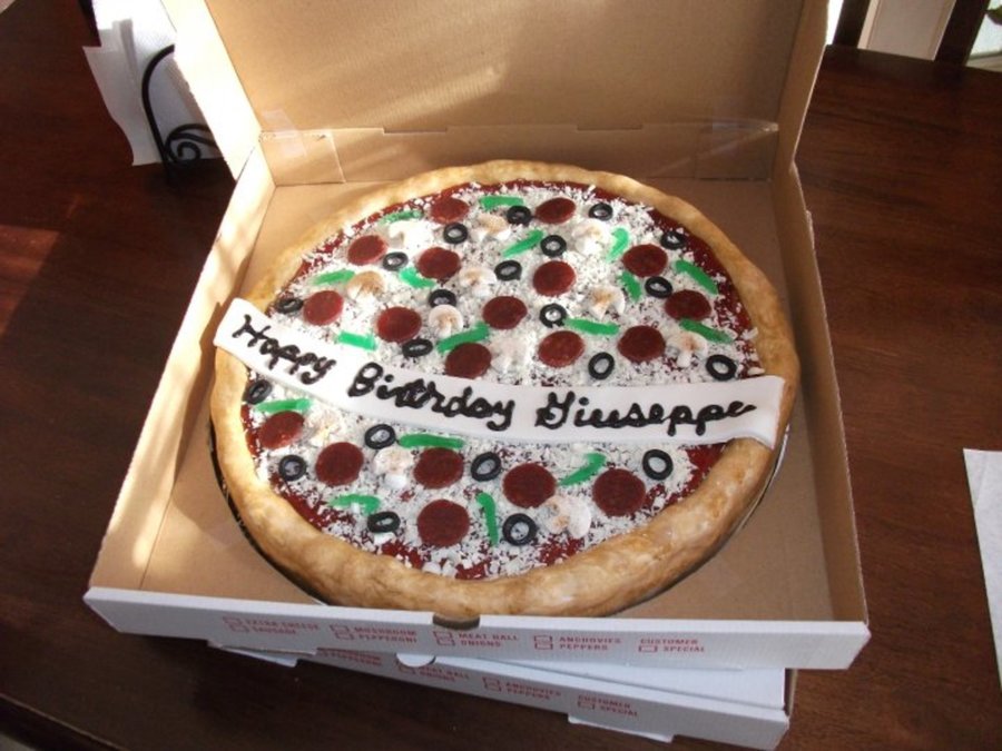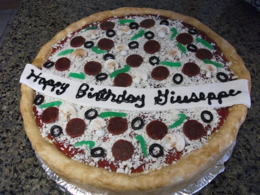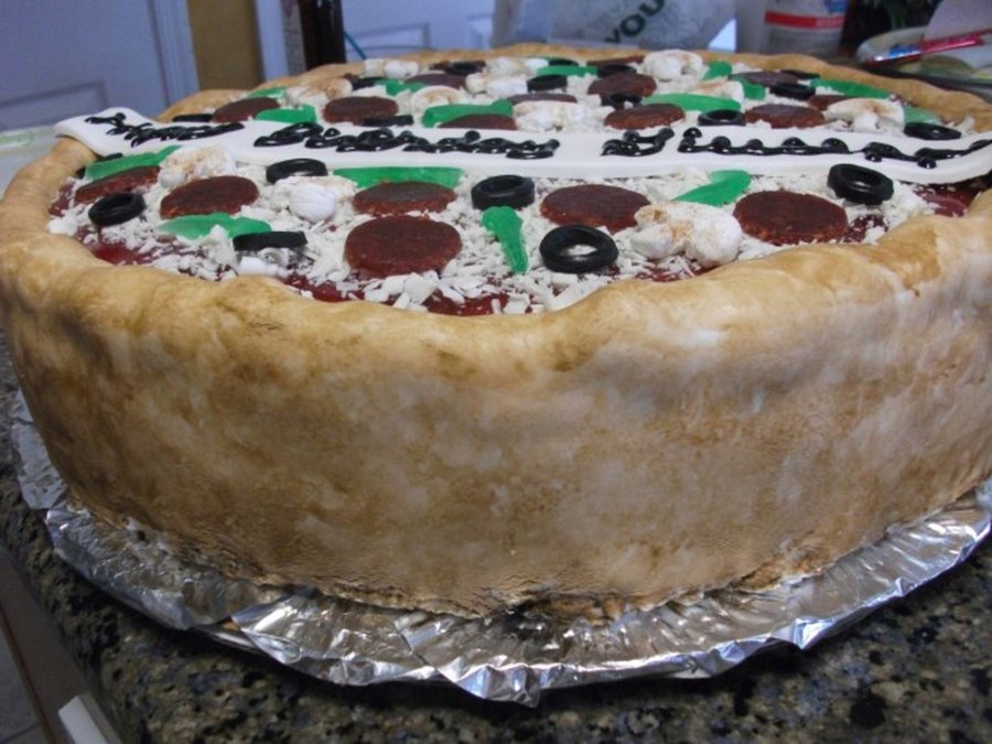 A friend was having a pizza party and wanted a cake to look like a pizza.