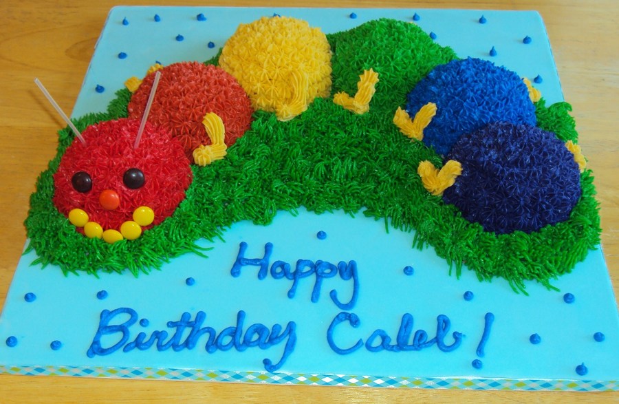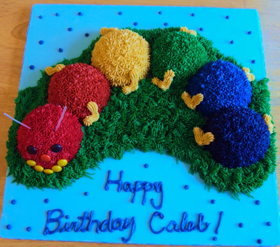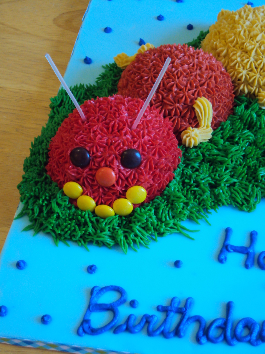 This was a little guy's 2nd birthday. I wasn't sure what to make his so I came up with this. It is made of vanilla cake. Each round is a different color butter cream(red, orange, yellow, green, blue and purple). Although it is hard to tell by the photo. Ha