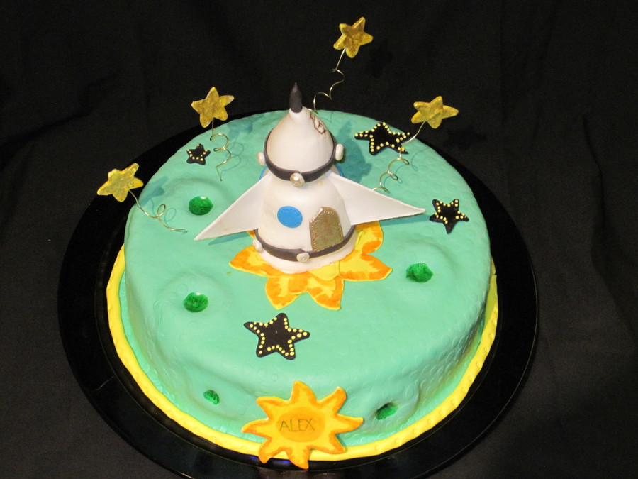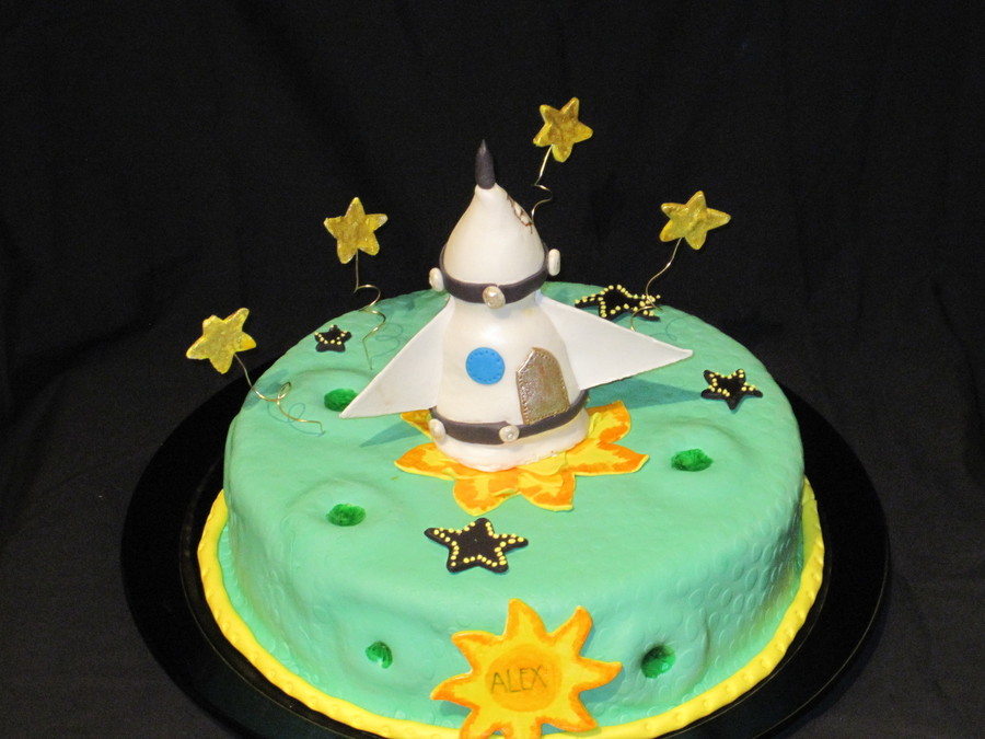 Vanilla cake with dulce de leche filling. Cover in MMF everything is MMF except the sun and the stars which are gumpaste.