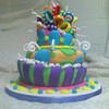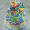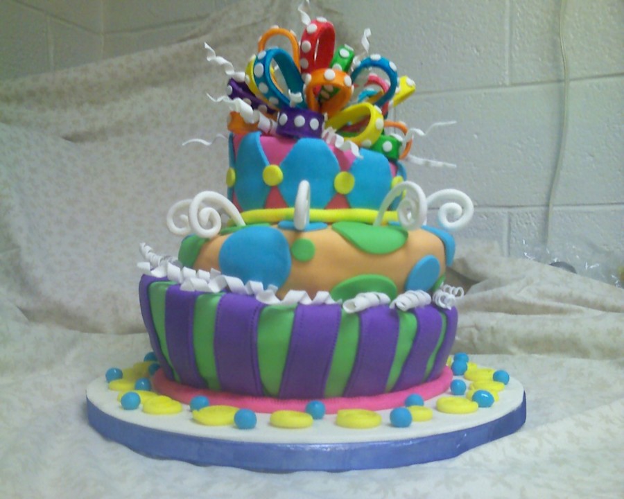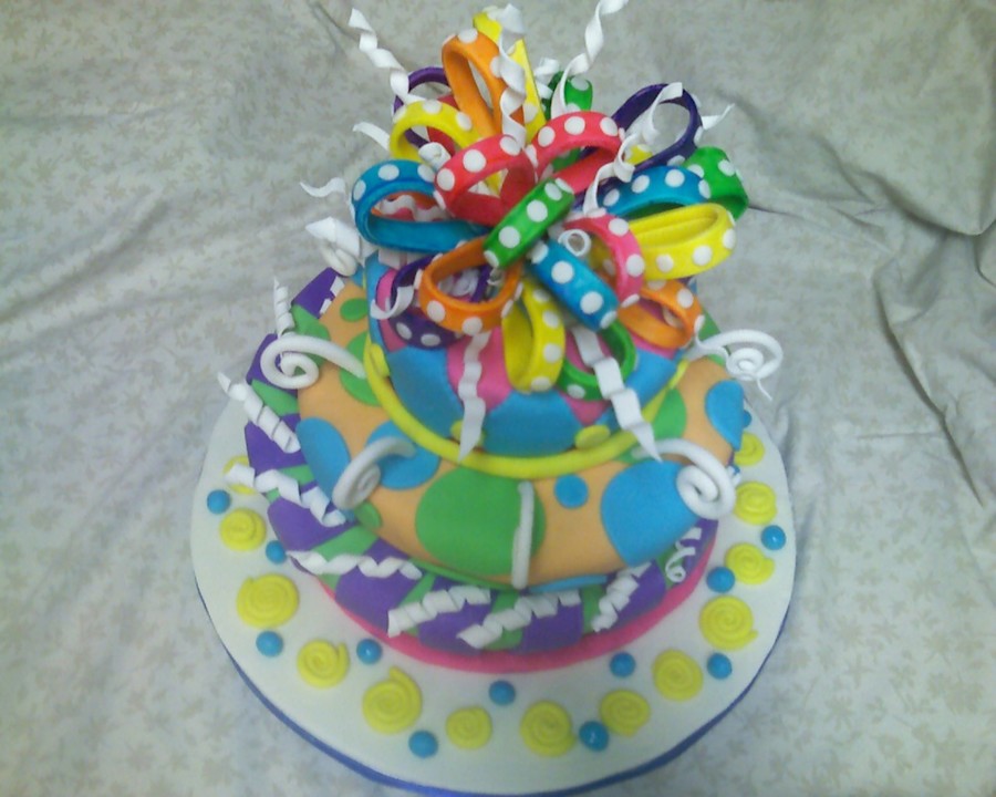 This was my first topsy turvy cake, it was so much fun to do, but I say that about every cake I do :) Bottom layer was chocolate cake with chocolate mousse, the two top layers were vanilla cake with strawberry buttercream. Covered in MMF, fondant bow and gum paste accents. TFL