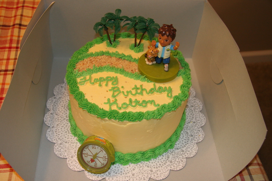 Ordered the Diego kit from online. Rest of cake is buttercream, except road is ground up graham crackers.