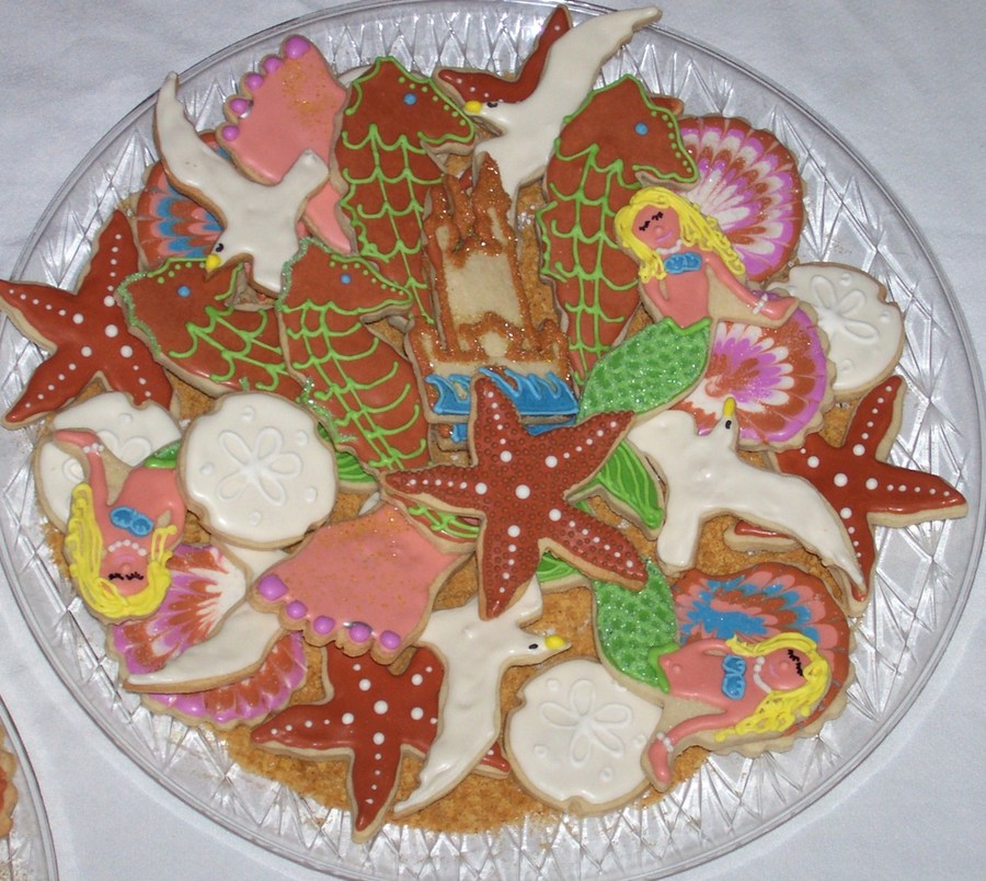Ocean theme cookies I made for school for teacher appreciation day.Inspired by some beautiful ocean cookies on flickr by Polka-dot-zebra, sweetsugarbelle and cookieartisan. NFSC with antonia's ri