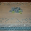 A couple called me the day before their wedding in a panic because the lady who did their wedding cake had to take her husband to the hospital before she got to do their sheet cakes. I was happy to help them out. Just a basic yellow cake with buttercream and fondant flowers.