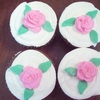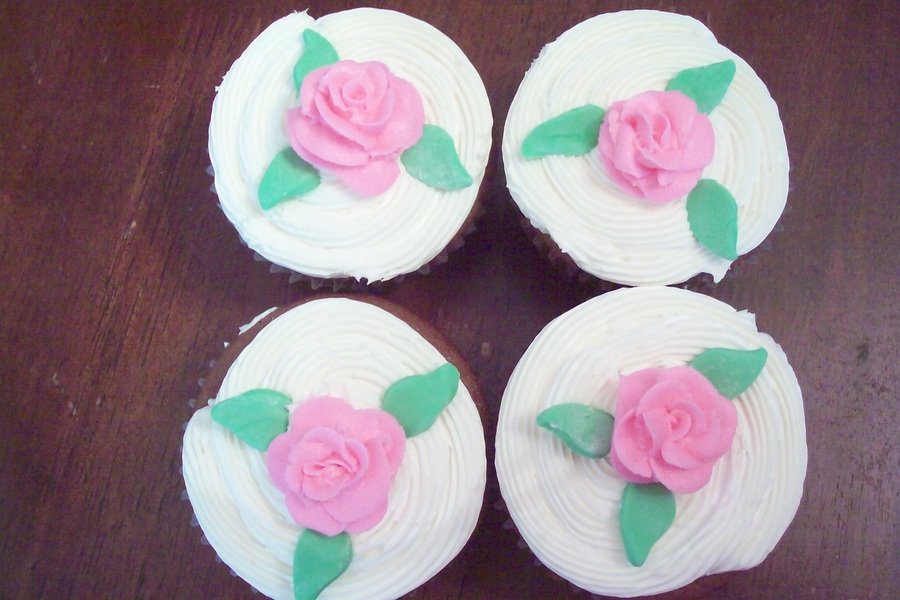 Large cupcakes. carrot cake, cream cheese icing. Buttercream rose, fondant leaves.