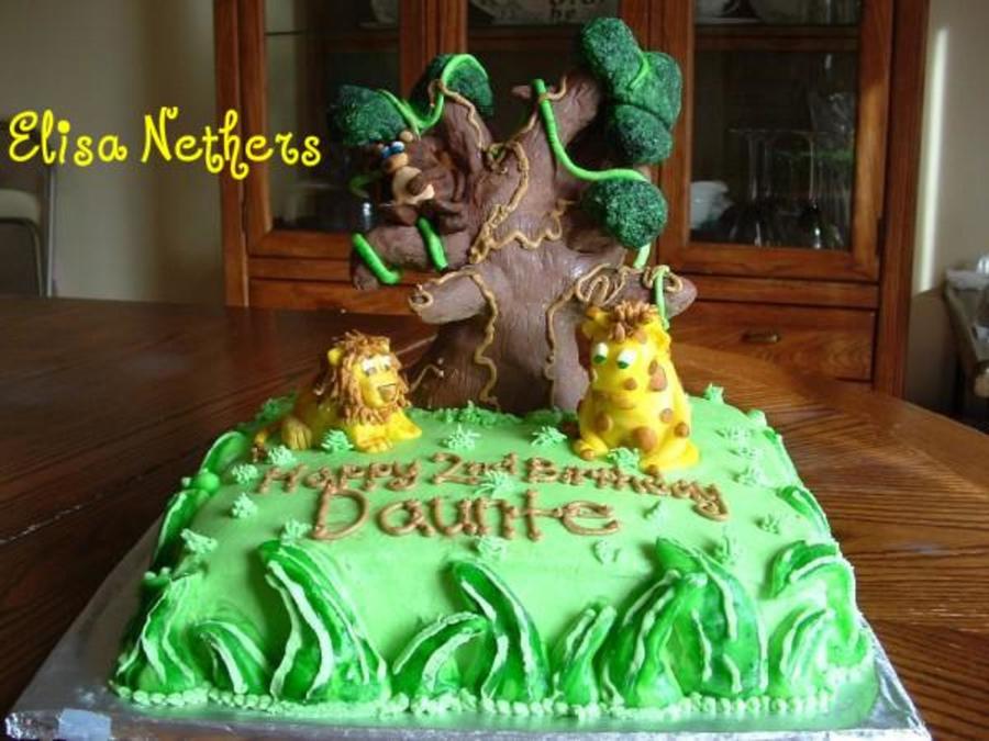 did this for a 2 yr.old who love animals! the tree is RKT and modeling chocolate and the animals are RKT and MF. Its white cake with buttercreme and MF accents.