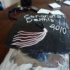 This is a graduation cap i did for my brother in laws college graduation. 2-8" round cakes carved. the top is a 10x10 sugar cookie. (i got the idea from someone on cc. Cant remember the name but thanks!)