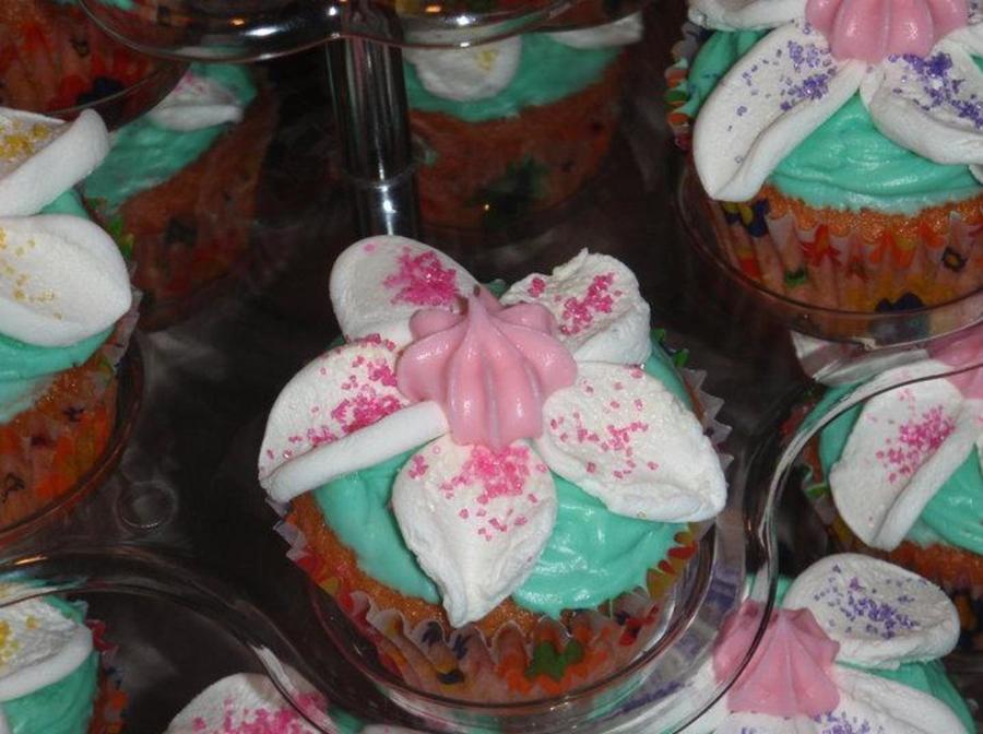 The spring cupcakes I made. The flowers are made out of marshmallows!