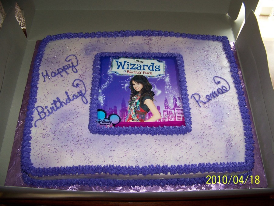 cake for a young lady who loves selena gomez. The cake is covered in buttercream, but the picyure of Selena is just a picture