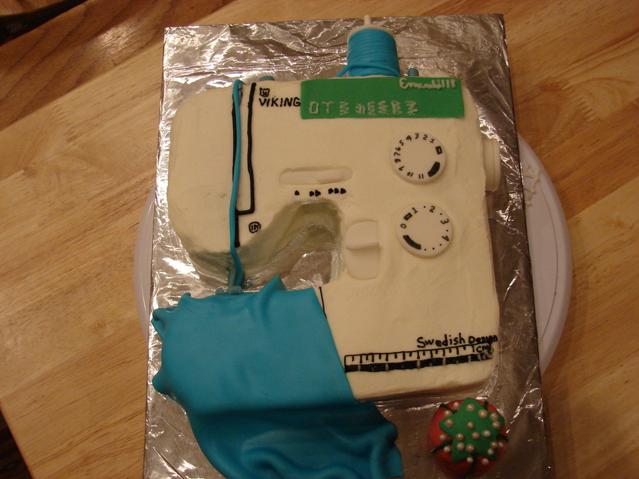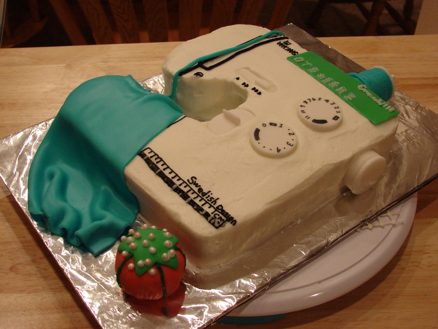 Egg-free/Wheat-free devil's food cake shaped like a sewing machine. Buttercream frosting, fondant decorations. Sewing machine cake made for my Mom's 60th birthday to match the gift of a new sewing machine us kids got for her. Got the idea from other CC pictures. Thanks for looking!