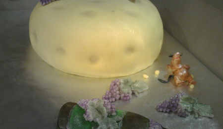 This was my first attempt, with a cake like this, I found the ball so tricky to cover it took three tries and some tears....lol Thanks to all the great pics on here!!!