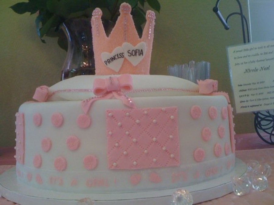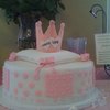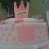 She wanted a princess baby shower cake. The ribbon on the bottom says its a girl. Crown made of gum paste and accents as well.