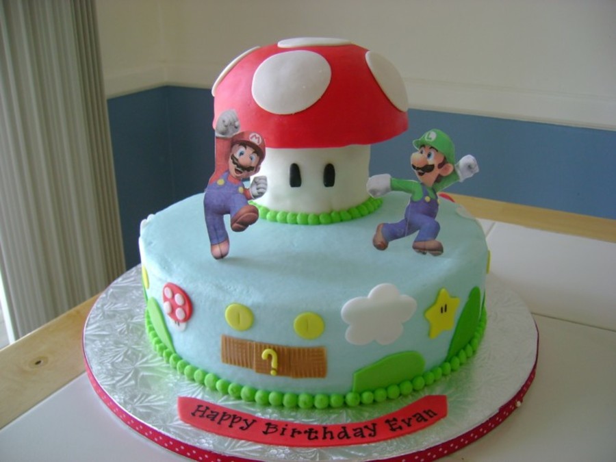 Bottom is a 10" chocolate fudge cake, top is a 4" cake for base of mushroom and 1/2 sportsball for the top. Cake is iced in buttercream, all decorations are fondant.